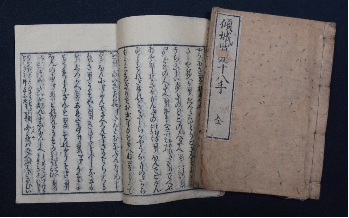 天明8年(1788)に蔦屋重三郎が出版した山東京伝作『傾城觿(けいせいけい)』には、当時、吉原で評判の二十九名の遊女が紹介されています。彼女たちの評価、性格、得意な芸、紋所などを記し、最後に彼女たちの筆跡を載せています。筆跡の内容は名作からの引用や自筆手紙の断片などですが、名作からの引用のいくつかは彼女たちの心情を代弁しているように思われます。